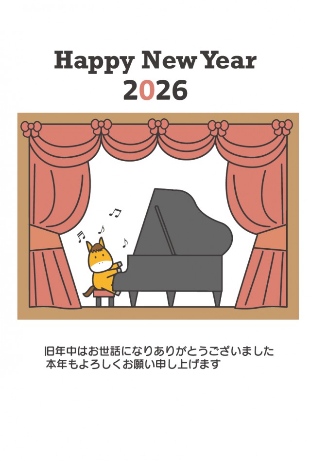 2026年午年 年賀状 ピアノを演奏する馬