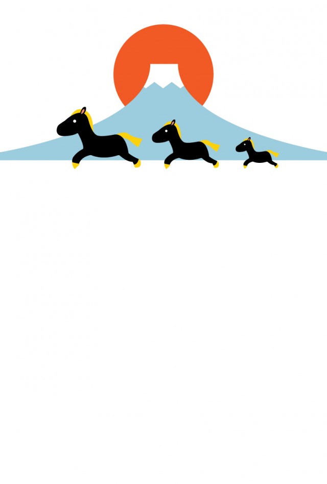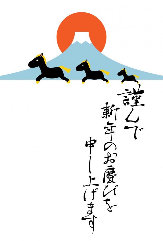 2026年午年 年賀状 富士山の前を走る三頭の黒馬に関連するまとめ
