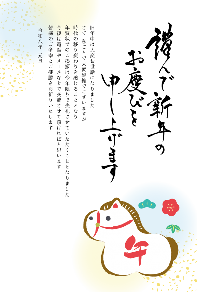 2026年午年年賀状じまいテンプレート 白い馬の置物