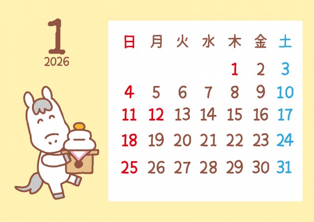 かわいい馬と季節のモチーフ 2026年 1月カレンダーに関連するまとめ