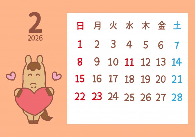 かわいい馬と季節のモチーフ 2026年 2月カレンダーに関連するまとめ