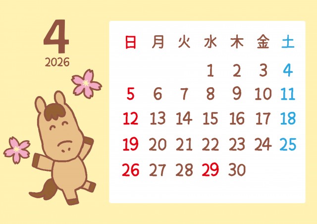 かわいい馬と季節のモチーフ 2026年 4月カレンダーに関連するまとめ