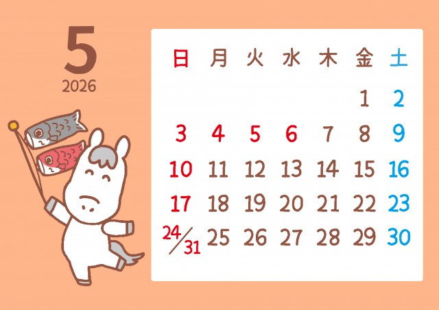 かわいい馬と季節のモチーフ 2026年 5月カレンダーに関連するまとめ