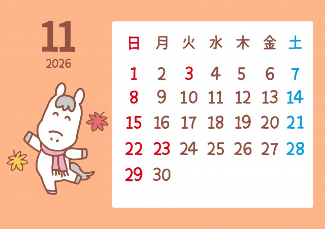 かわいい馬と季節のモチーフ 2026年 11月カレンダーに関連するまとめ