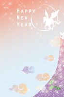 お正月にふさわしい縁起物と、馬をガーランドにつなげて、一面に配置した楽しいデザインです。文章なし…
