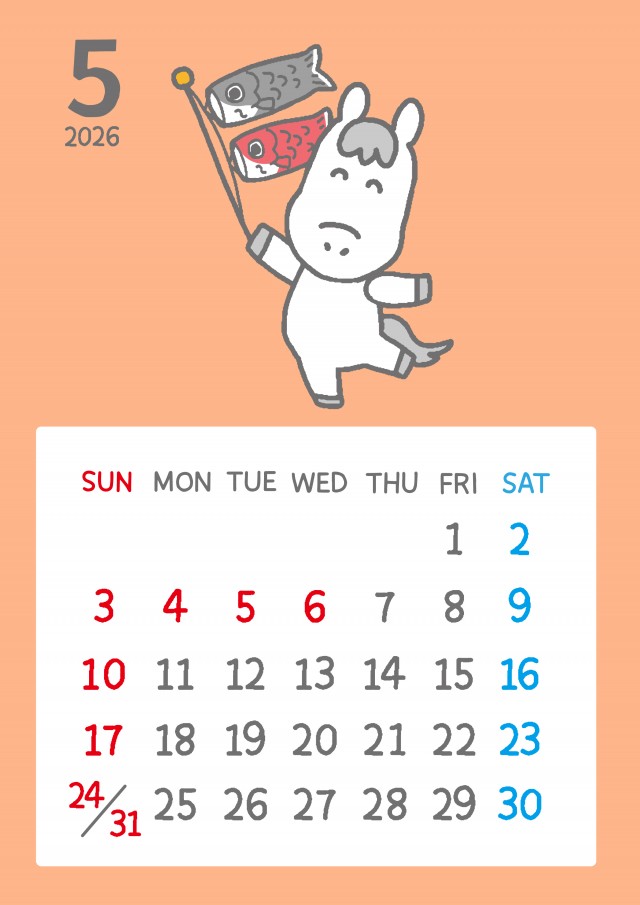 「白い馬の2026年5月カレンダー」の無料イラスト素材・雛形素材、無料で使える「白い馬の2026年5月カレンダー」を簡単ダウンロード出来ます。 素材ラボは「無料 イラスト」サイトとなり沢山の無料で使える素材がご利用頂けます。 「白い馬の2026年5月カレンダー」の投稿は「マメハル」様よりご利用ありがとうございます。 ご投稿頂きました沢山の「シンプル」、「カレンダー」、「2026年」より探す。 「白い馬の2026年5月カレンダー」関連の無料イラスト素材・雛形素材を投稿する事でポイントが獲得出来たり無料で「シンプル」、「カレンダー」、「2026年」関連の素材等を利用する、事が可能となります。 利用をする方は「会員登録(無料)」より「カレンダー」関連を投稿で出来る方は「イラストレーター様登録」よりご登録くださいませ。 「カレンダー」は日々イラストレーター様より最新の無料イラストが投稿されております。