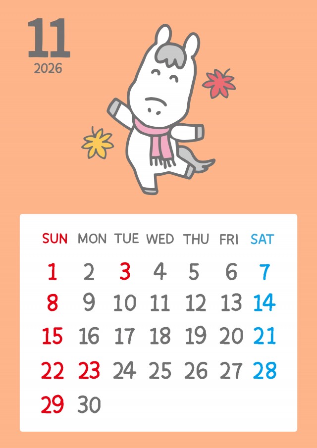 「白い馬の2026年11月カレンダー」の無料イラスト素材・雛形素材、無料で使える「白い馬の2026年11月カレンダー」を簡単ダウンロード出来ます。 素材ラボは「無料 イラスト」サイトとなり沢山の無料で使える素材がご利用頂けます。 「白い馬の2026年11月カレンダー」の投稿は「マメハル」様よりご利用ありがとうございます。 ご投稿頂きました沢山の「シンプル」、「カレンダー」、「2026年」より探す。 「白い馬の2026年11月カレンダー」関連の無料イラスト素材・雛形素材を投稿する事でポイントが獲得出来たり無料で「シンプル」、「カレンダー」、「2026年」関連の素材等を利用する、事が可能となります。 利用をする方は「会員登録(無料)」より「カレンダー」関連を投稿で出来る方は「イラストレーター様登録」よりご登録くださいませ。 「カレンダー」は日々イラストレーター様より最新の無料イラストが投稿されております。