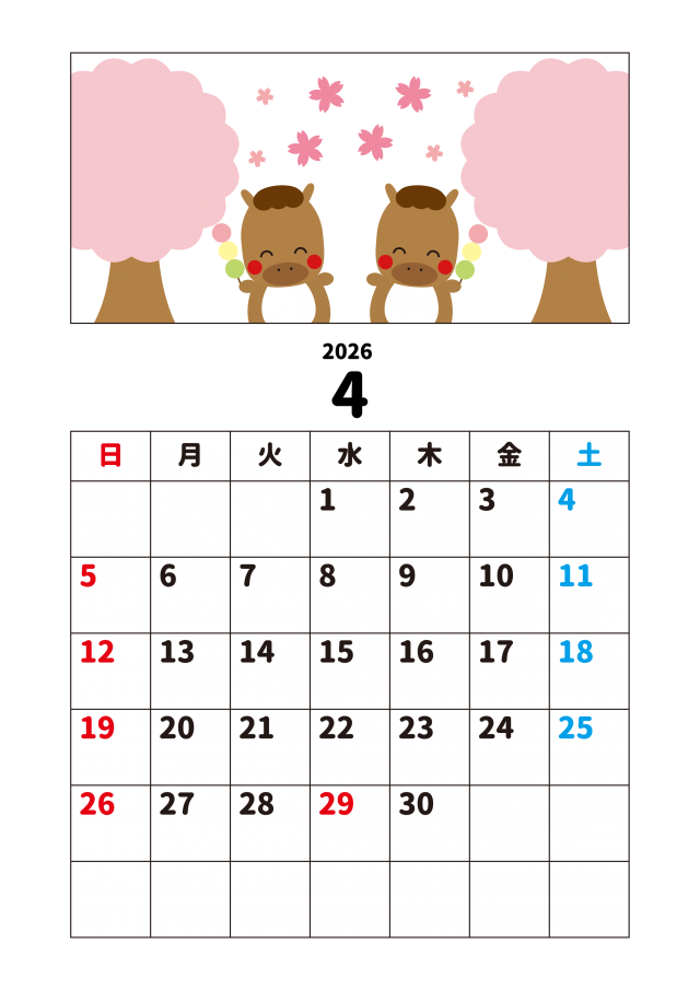 4_2026年月間カレンダー_4月・桜の木と馬に関連するまとめ