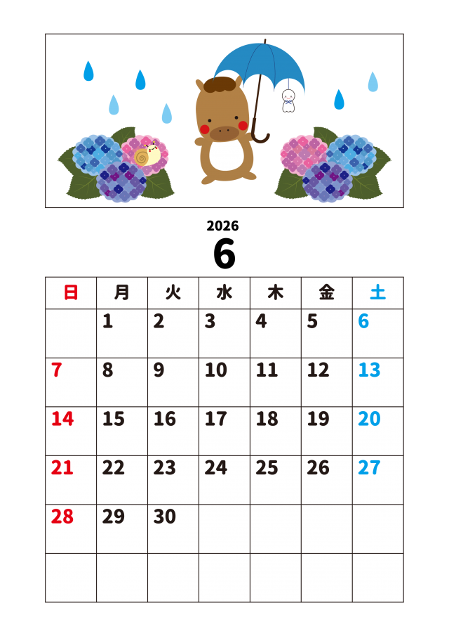 6_2026年月間カレンダー_6月・梅雨と馬に関連するまとめ