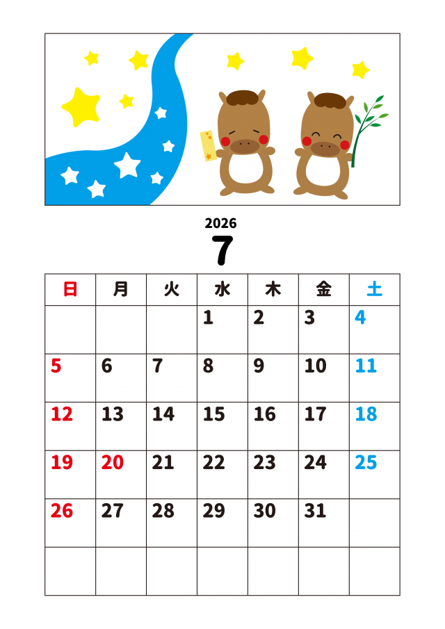 7_2026年月間カレンダー_7月・七夕と馬に関連するまとめ