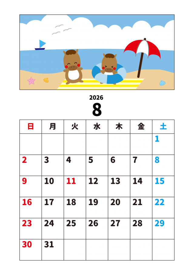 8_2026年月間カレンダー_8月・夏休みと馬