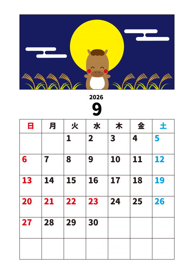 9_2026年月間カレンダー_9月・お月見と馬