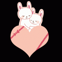 寄り添ううさぎ達、ハートに気持ちを込めて