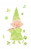 フルートまたは横笛を吹く小人を描いた音楽テーマのイラストです。手描きふうにしあげてみました。ワン…