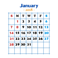 2018年 カレンダー 01月 シンプル 〔JPG/PING/GIF〕