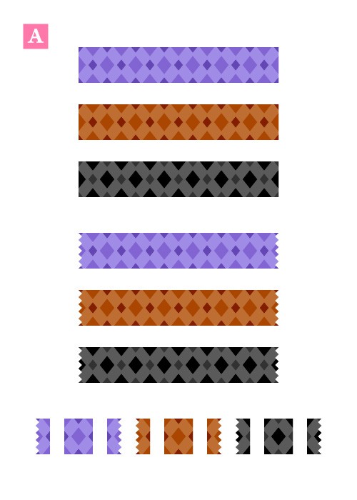 マスキングテープ・ひし形柄《紫・茶・黒》セット 長さ調整可〔JPG/PING/EPS〕