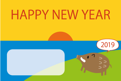 2019年 年賀状 海から初日の出を眺めるイノシシに関連するまとめ