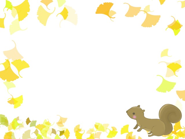 - リスと色とりどりの銀杏の葉っぱが良いですね。リスの表情が良いです