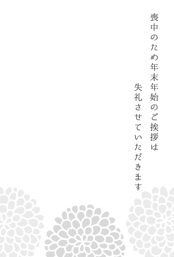- 。喪中はがきに使用させていただきます。シンプルでそれでいてはかなげな感じが好きです。ありがとうございます。
