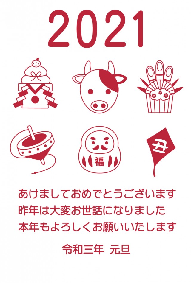 2021年 丑年 年賀状 赤色単色に関連するまとめ