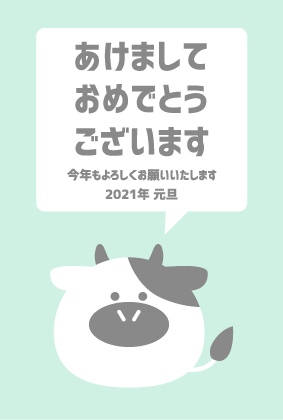 年賀状 2021 平たい牛が話す年賀状