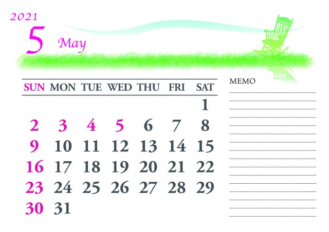 2021年 シルエットカレンダー メモ欄つき 5月