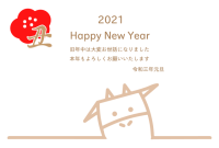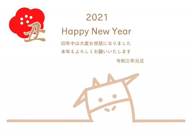 梅に丑の字 覗いている牛イメージの2021Happy New Year年賀状に関連するまとめ