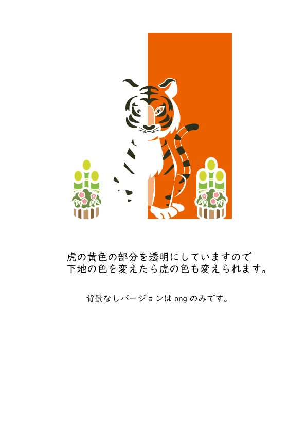 トラの黄色の部分が透明になっており、背景に別の色を選び、上にトラの画像をのせれば虎の色が変わります。
