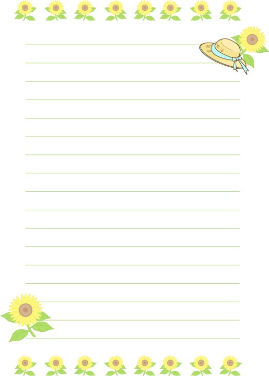 便箋素材・縦型、横書き、ひまわりと麦わら帽子のデザインに関連するまとめ