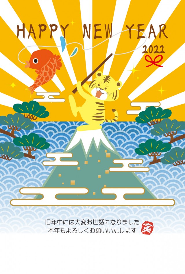 富士山の頂上で鯛を釣っているトラの可愛い年賀状2022に関連するまとめ