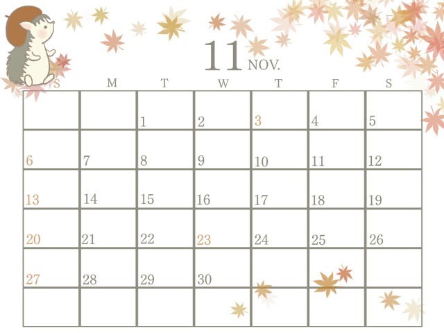 二〇二二年カレンダー ハリネズミの一年 11月 紅葉とハリネズミに関連するまとめ