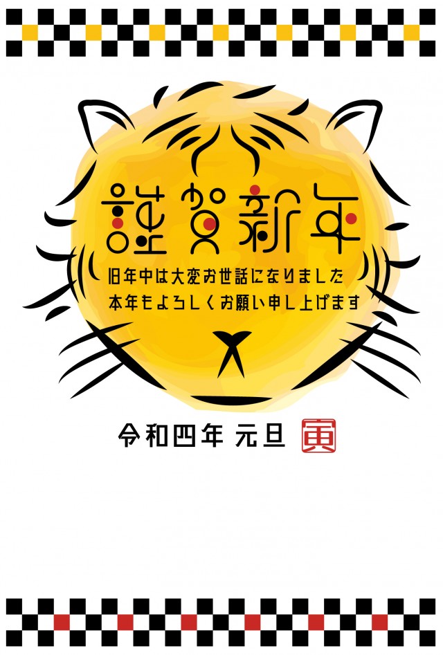 2022年令和四年寅年年賀状テンプレートかわいい虎フレームと謹賀新年市松模様無料イラストフリー素材に関連するまとめ
