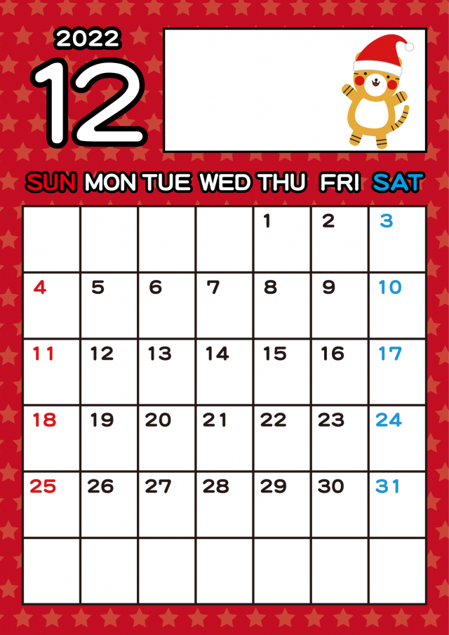 12_カレンダー_2022・12月・トラ・クリスマス・星・メモ・濃赤・縦に関連するまとめ