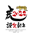 寅年年賀状テンプレート シンプル リアルな手書きの虎と虎2022筆文字