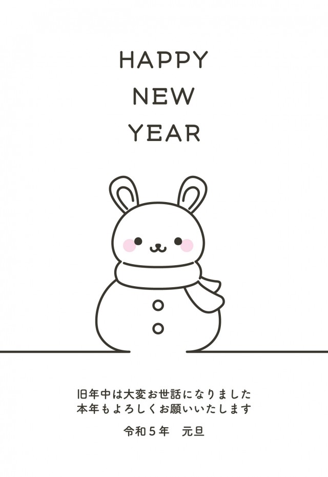 2023年 年賀状 シンプルなうさぎの形の雪だるまに関連するまとめ