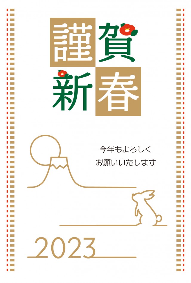 「年賀状 2023 線画の正月素材と謹賀新年のロゴ」の無料イラスト素材・雛形素材、無料で使える「年賀状 2023 線画の正月素材と謹賀新年のロゴ」を簡単ダウンロード出来ます。 素材ラボは「無料 イラスト」サイトとなり沢山の無料で使える素材がご利用頂けます。 「年賀状 2023 線画の正月素材と謹賀新年のロゴ」の投稿は「おーとみーるこ」様よりご利用ありがとうございます。 ご投稿頂きました沢山の「富士山」、「ウサギ」、「寒椿」より探す。 「年賀状 2023 線画の正月素材と謹賀新年のロゴ」関連の無料イラスト素材・雛形素材を投稿する事でポイントが獲得出来たり無料で「富士山」、「ウサギ」、「寒椿」関連の素材等を利用する、事が可能となります。 利用をする方は「会員登録(無料)」より「年賀状・はがき」関連を投稿で出来る方は「イラストレーター様登録」よりご登録くださいませ。 「年賀状・はがき」は日々イラストレーター様より最新の無料イラストが投稿されております。