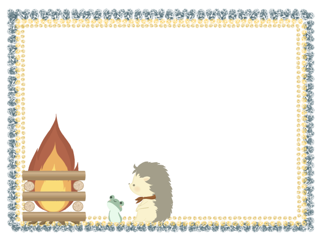 キャンプファイヤーをするカエルとハリネズミのフレームイラスト に関連するまとめ