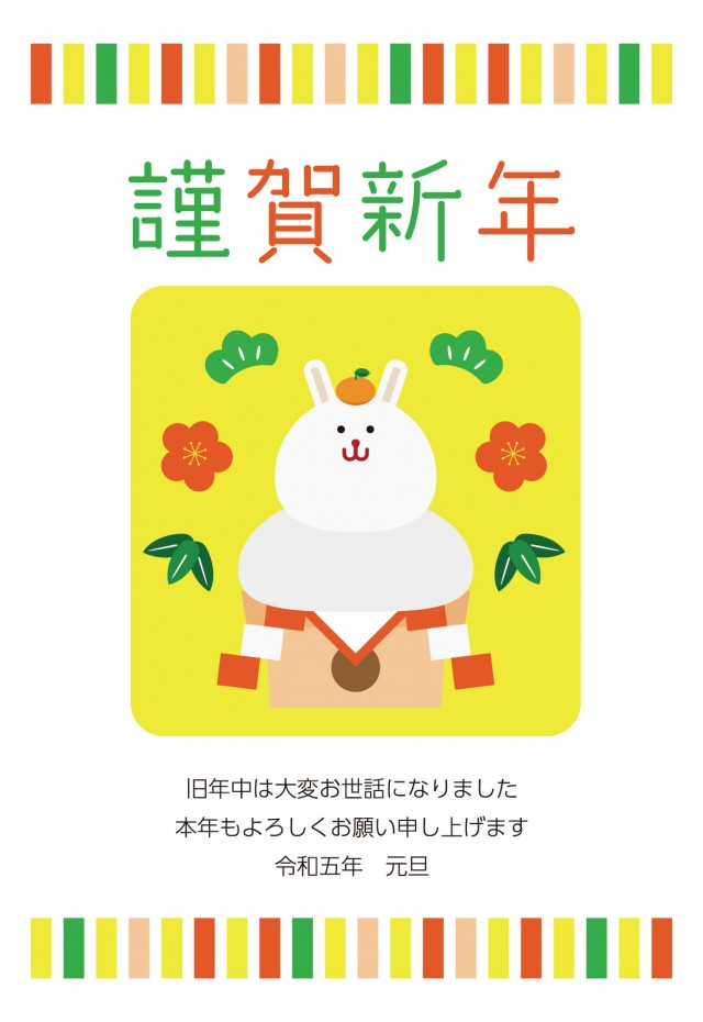 年賀状2023 縦05 うさぎの鏡餅 四角1 文字ありなしに関連するまとめ