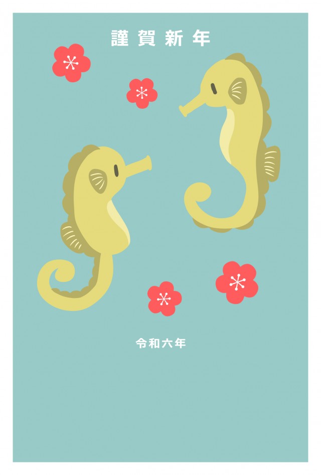二匹のタツノオトシゴの2024年辰年年賀状素材