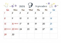 2024年9月のカレンダーです。桔梗とススキ、うさぎのシルエットを入れた秋のかわいいデザインにな…
