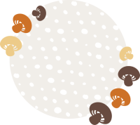 キノコと丸い背景のフレーム素材です。季節のチラシ・装飾・招待状・グリーティングカードなどにご活用…