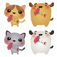 入学式をテーマにしたイラスト素材です。うさぎ・キツネ・くま・小鳥・リスがそれぞれ違う色のランドセ…