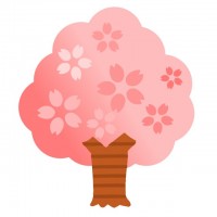 ピンク色グラデーションの桜の樹木イラスト素材でございます。太い幹に縞模様を入れて薄ピンクや濃いピ…