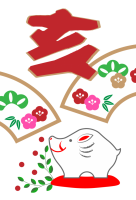のし袋に入ったイノシシ2019年賀状素材でございます。梅と扇子、イノシシがのし袋に入った年賀状で…